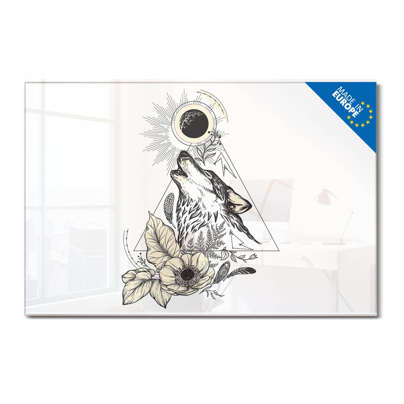 Glas Magnettafel im Querformat Motiv Mystischer Wolf