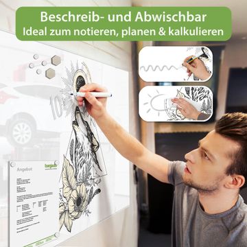 Die banjado Glas Magnettafel mit dem Motiv Motiv Mystischer Wolf verbindet Funktionalität mit Stil. Sie ersetzt das Zettelchaos durch klare Strukturen und bringt dabei eine warme, natürliche Atmosphäre in Ihr Zuhause. Ob im Büro, in der Küche oder im Eingangsbereich - dieses Design-Board zieht Blicke an und sorgt für Ordnung mit Charakter.