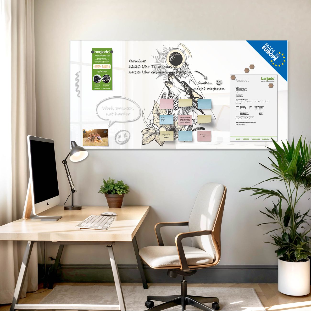 Jede Glas Magnettafel wird in unserer Werkstatt von Hand gefertigt und sorgfältig geprüft. So erhalten Sie ein echtes Qualitätsprodukt, das Funktion und Ästhetik perfekt vereint.?? Warum banjado?