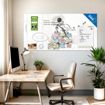 Auf der glatten Glasoberfläche lassen sich Termine, Rezepte oder Notizen ganz einfach mit Kreidestiften festhalten und rückstandslos entfernen. Starke Neodym-Magnete halten Ihre wichtigsten Erinnerungen sicher an Ort und Stelle. So entsteht Ihre ganz persönliche Ideenwand - jeden Tag neu.