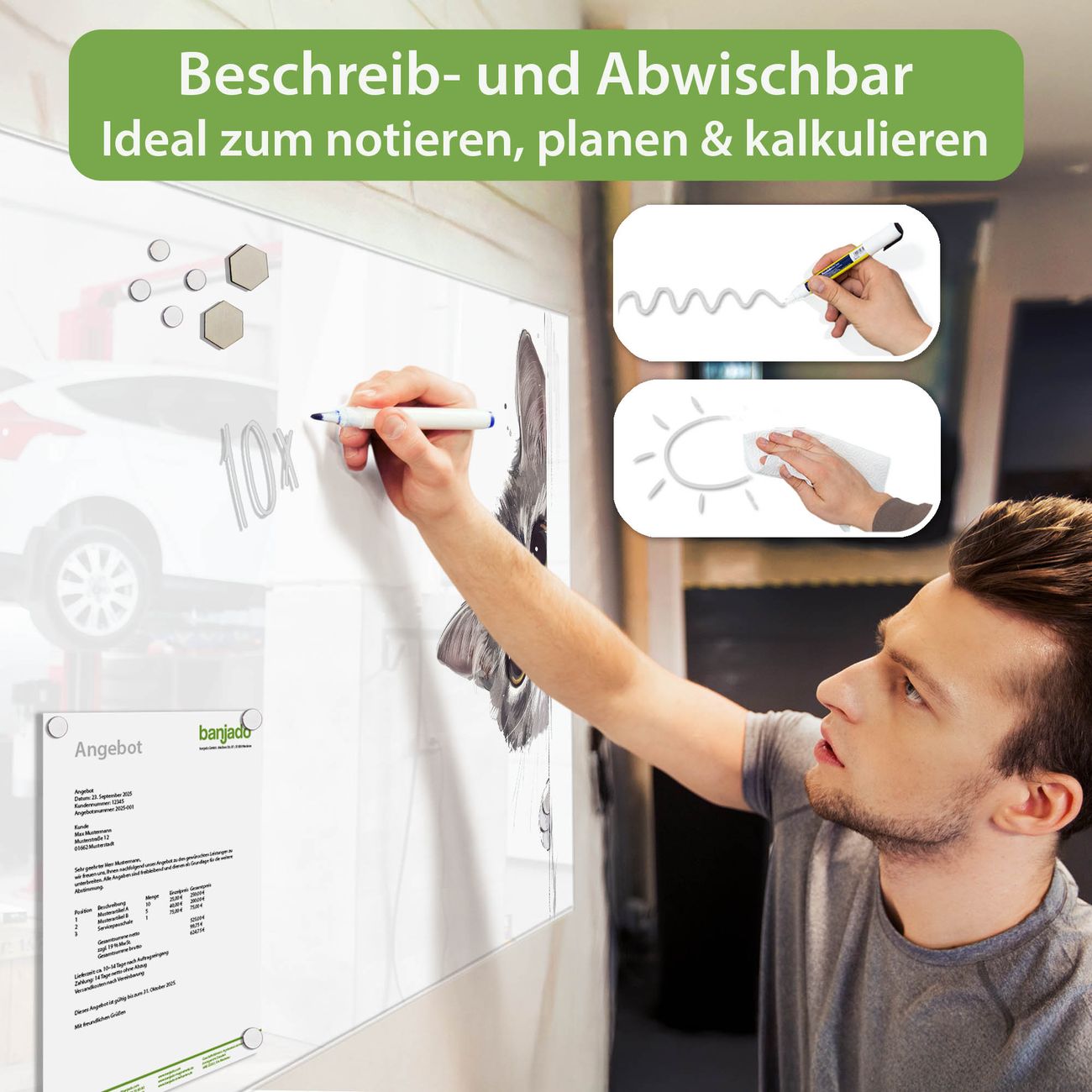 Bitte beachten Sie, dass ausschliessliche spezielle Magnete an der Glastafel haften. Wir empfehlen banjado Neodym Magnete, diese sind durch uns auf Wirksamkeit geprüft.