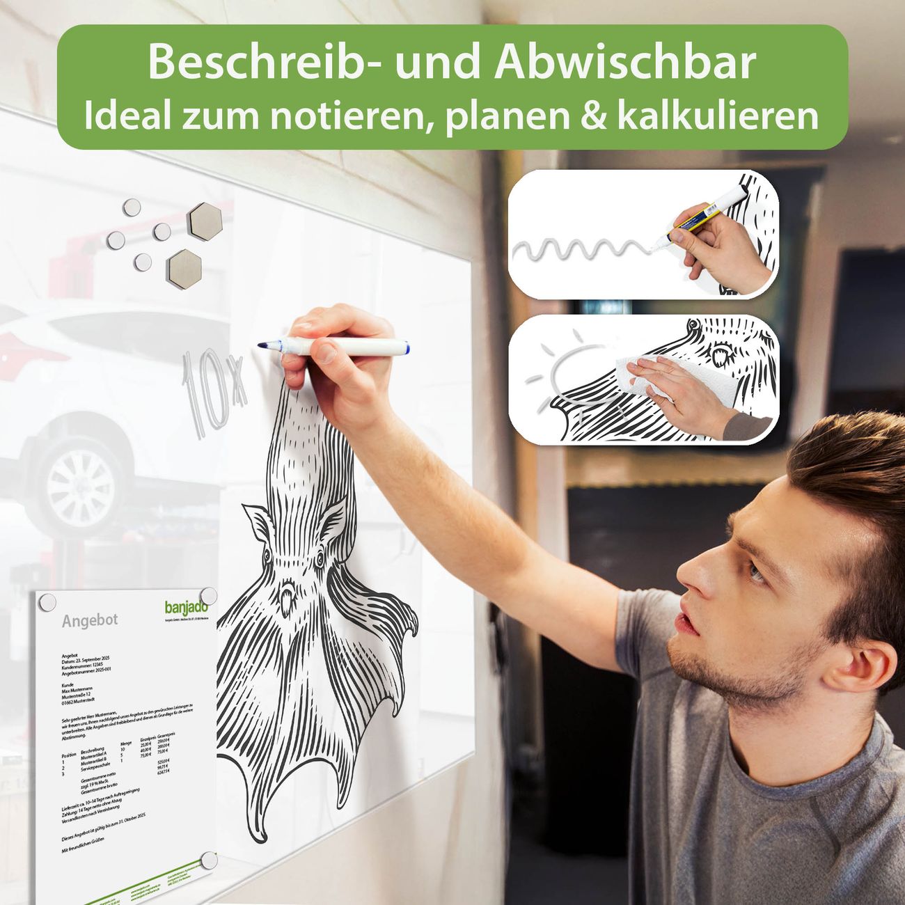 Jede Glas Magnettafel wird in unserer Werkstatt von Hand gefertigt und sorgfältig geprüft. So erhalten Sie ein echtes Qualitätsprodukt, das Funktion und Ästhetik perfekt vereint.?? Warum banjado?