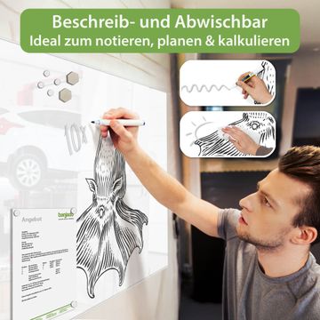 Auf der glatten Glasoberfläche lassen sich Termine, Rezepte oder Notizen ganz einfach mit Kreidestiften festhalten und rückstandslos entfernen. Starke Neodym-Magnete halten Ihre wichtigsten Erinnerungen sicher an Ort und Stelle. So entsteht Ihre ganz persönliche Ideenwand - jeden Tag neu.