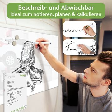 Auf der glatten Glasoberfläche lassen sich Termine, Rezepte oder Notizen ganz einfach mit Kreidestiften festhalten und rückstandslos entfernen. Starke Neodym-Magnete halten Ihre wichtigsten Erinnerungen sicher an Ort und Stelle. So entsteht Ihre ganz persönliche Ideenwand - jeden Tag neu.