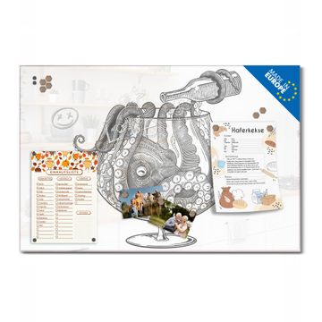 Material: 4mm Sicherheitsglas mit Metallrückwand Eigenschaften: beschreibbar, magnetisch, kratzfest Maße: 75x50x0,6cm, 5,63kg schwer Motiv Nummer 13033 Oktopus im Glas 2 Zubehör: inklusive 4 Neodym-Magnete