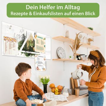 Auf der glatten Glasoberfläche lassen sich Termine, Rezepte oder Notizen ganz einfach mit Kreidestiften festhalten und rückstandslos entfernen. Starke Neodym-Magnete halten Ihre wichtigsten Erinnerungen sicher an Ort und Stelle. So entsteht Ihre ganz persönliche Ideenwand - jeden Tag neu.
