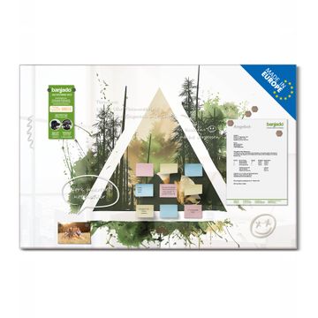 Material: 4mm Sicherheitsglas mit Metallrückwand Eigenschaften: beschreibbar, magnetisch, kratzfest Maße: 120x80x0,6cm, 14,40kg schwer Motiv Nummer 13466 Panda im Wald Dreieck Zubehör: inklusive 4 Neodym-Magnete