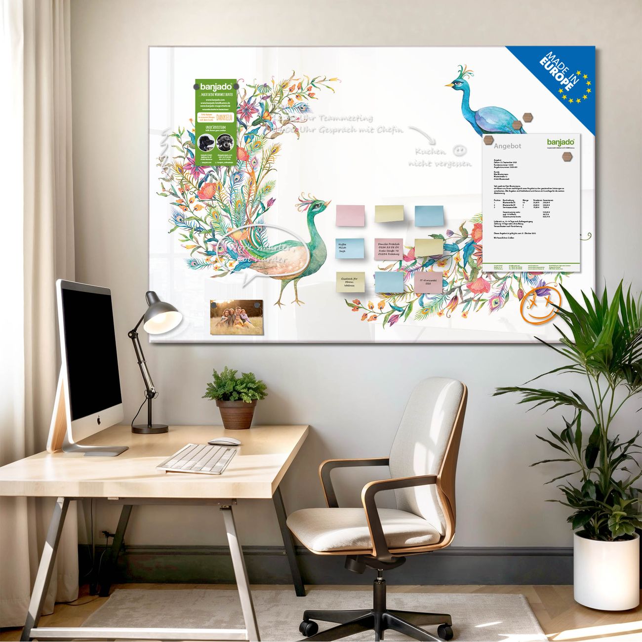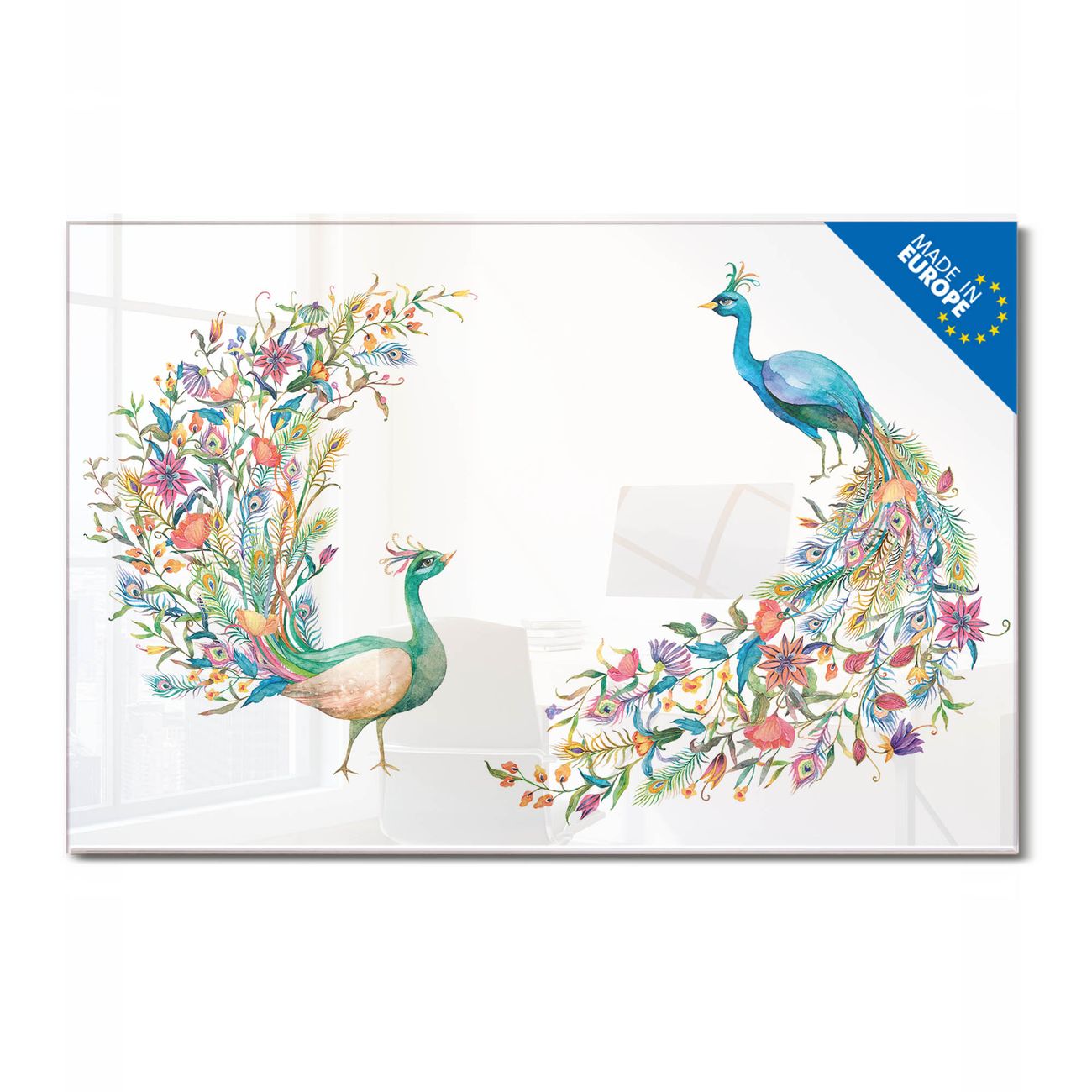 Glas Magnettafel im Querformat Motiv Pfauenparadies