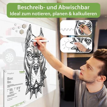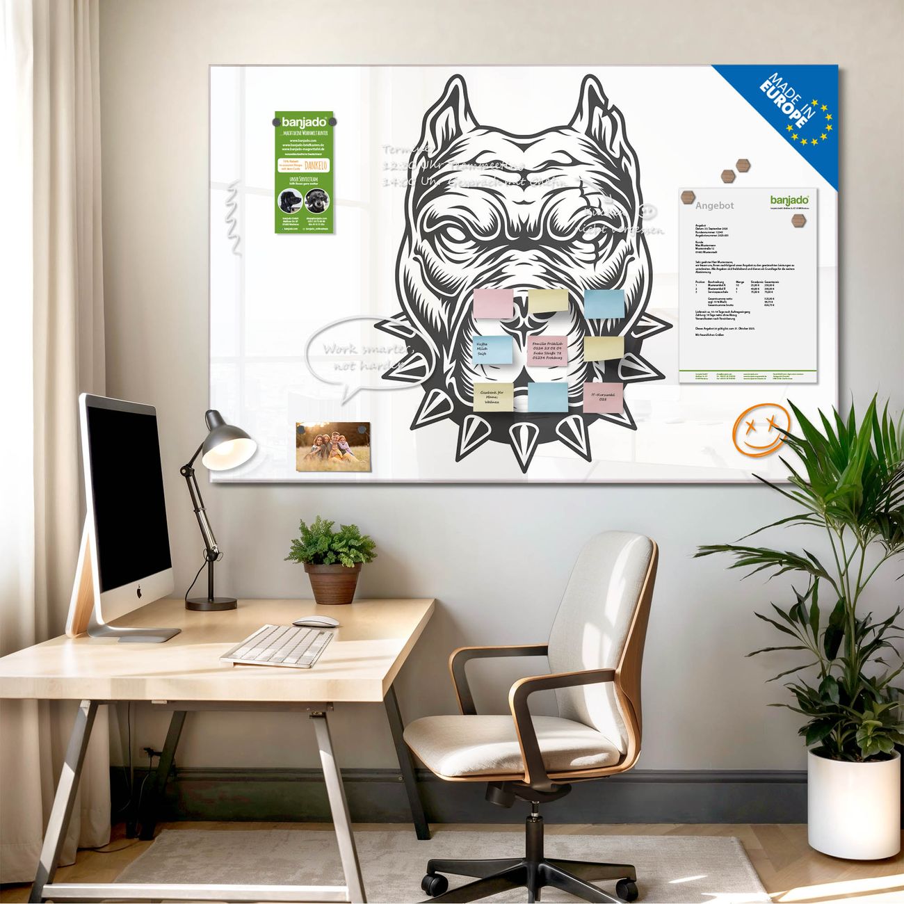Die banjado Glas Magnettafel mit dem Motiv Motiv Pitbull Portrait verbindet Funktionalität mit Stil. Sie ersetzt das Zettelchaos durch klare Strukturen und bringt dabei eine warme, natürliche Atmosphäre in Ihr Zuhause. Ob im Büro, in der Küche oder im Eingangsbereich - dieses Design-Board zieht Blicke an und sorgt für Ordnung mit Charakter.