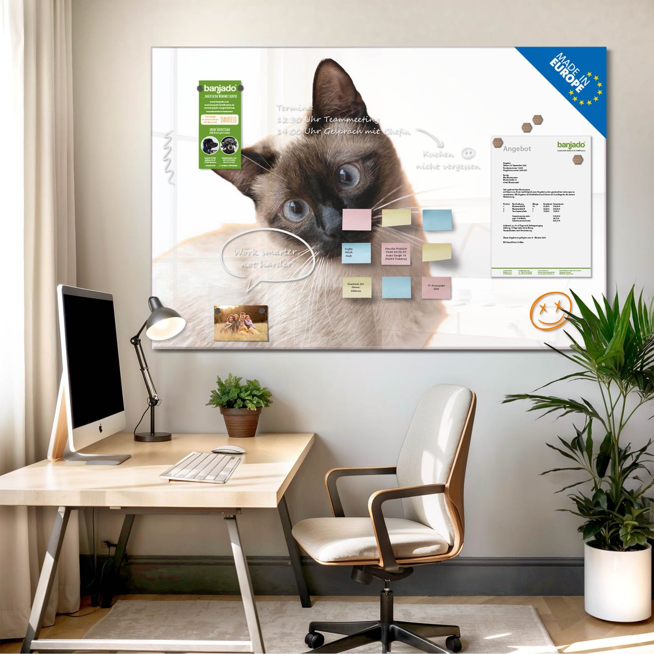 Die banjado Glas Magnettafel mit dem Motiv Motiv Porträt einer Siamkatze verbindet Funktionalität mit Stil. Sie ersetzt das Zettelchaos durch klare Strukturen und bringt dabei eine warme, natürliche Atmosphäre in Ihr Zuhause. Ob im Büro, in der Küche oder im Eingangsbereich - dieses Design-Board zieht Blicke an und sorgt für Ordnung mit Charakter.
