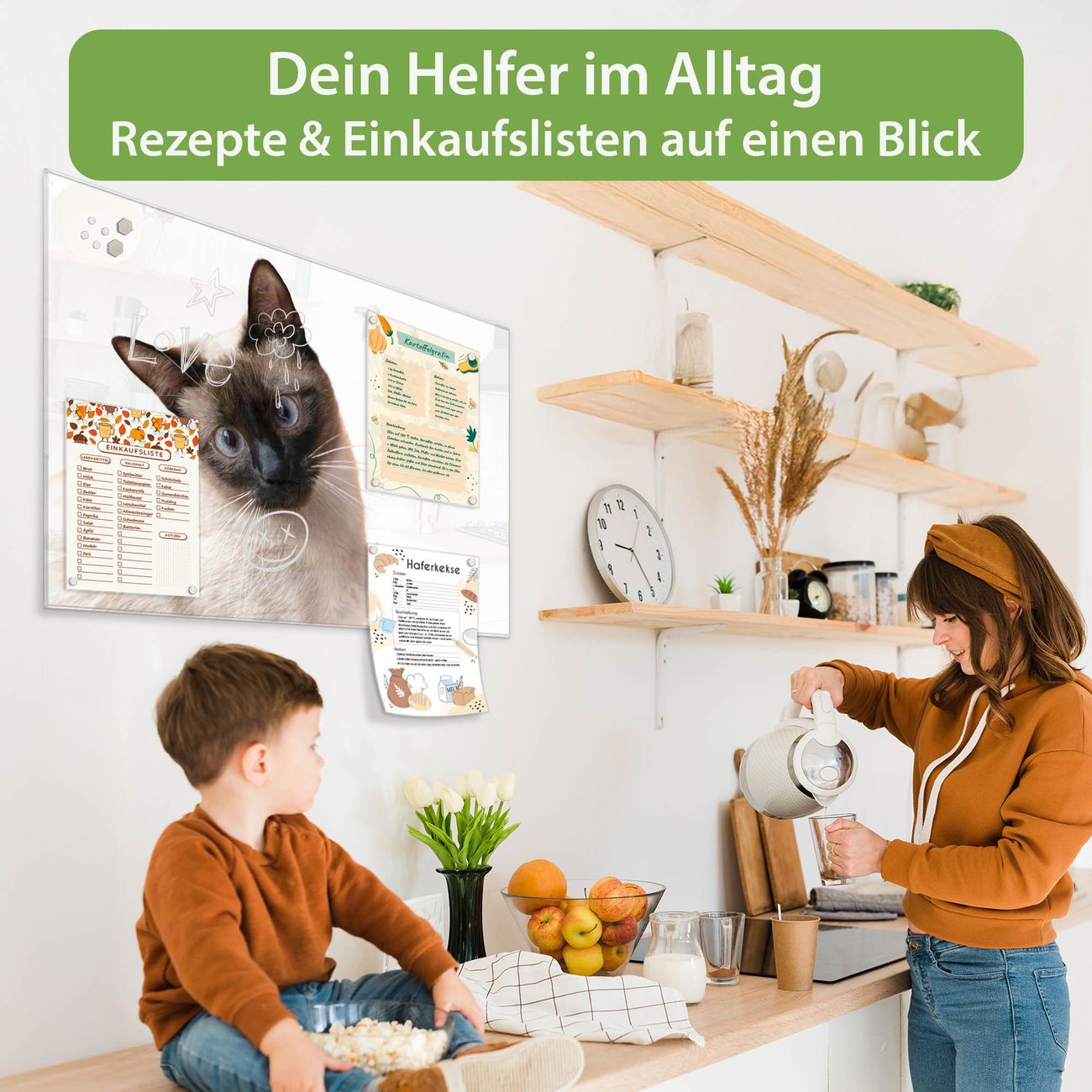Ein Stück Design, das Ihren Alltag organisiert. Schreiben, heften, inspirieren - alles an einem Ort. Qualität, die man spürt. Montage leicht gemacht. Handwerk mit Herz - veredelt in Sachsen. Einzigartiges Design mit Motiv Motiv Porträt einer Siamkatze Beschreibbare Glasoberfläche, leicht zu reinigen Starke Magnetkraft durch Stahlrückwand Inklusive 4 Neodym-Magneten Flexible Montageoptionen Handveredelt in Sachsen - Qualität, die bleibt