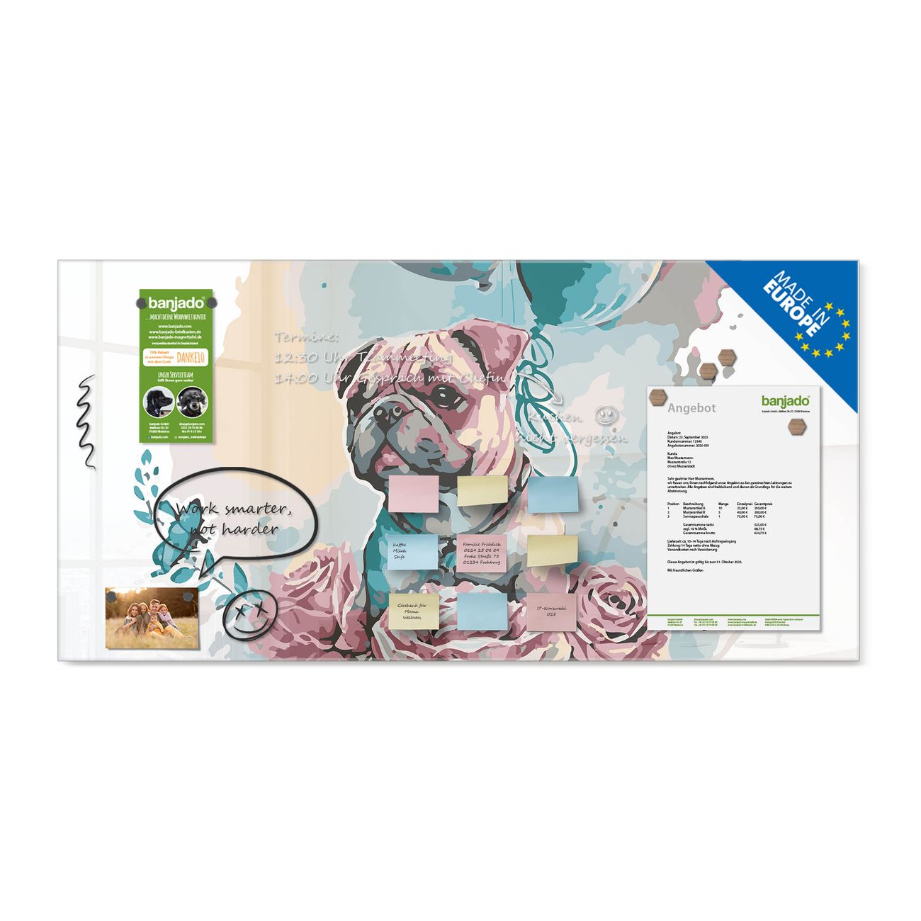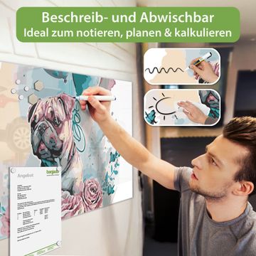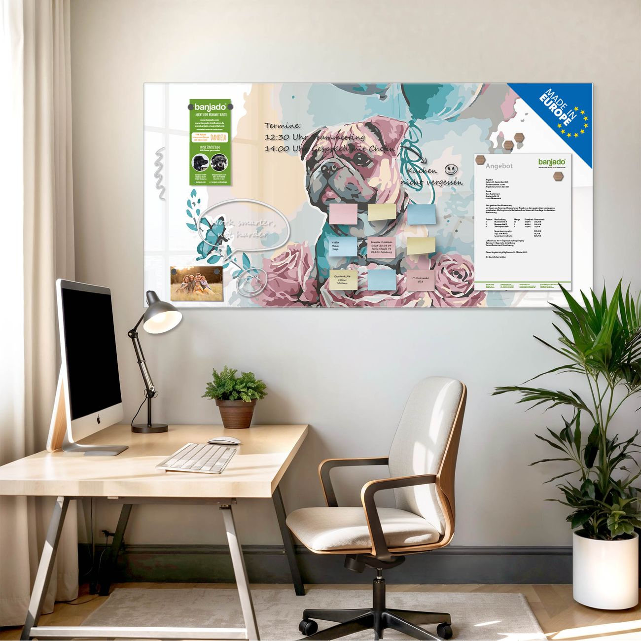Die banjado Glas Magnettafel mit dem Motiv Motiv Pudeliges Blumenglück verbindet Funktionalität mit Stil. Sie ersetzt das Zettelchaos durch klare Strukturen und bringt dabei eine warme, natürliche Atmosphäre in Ihr Zuhause. Ob im Büro, in der Küche oder im Eingangsbereich - dieses Design-Board zieht Blicke an und sorgt für Ordnung mit Charakter.