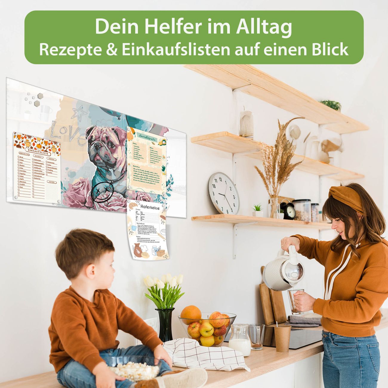 Ein Stück Design, das Ihren Alltag organisiert. Schreiben, heften, inspirieren - alles an einem Ort. Qualität, die man spürt. Montage leicht gemacht. Handwerk mit Herz - veredelt in Sachsen. Einzigartiges Design mit Motiv Motiv Pudeliges Blumenglück Beschreibbare Glasoberfläche, leicht zu reinigen Starke Magnetkraft durch Stahlrückwand Inklusive 4 Neodym-Magneten Flexible Montageoptionen Handveredelt in Sachsen - Qualität, die bleibt