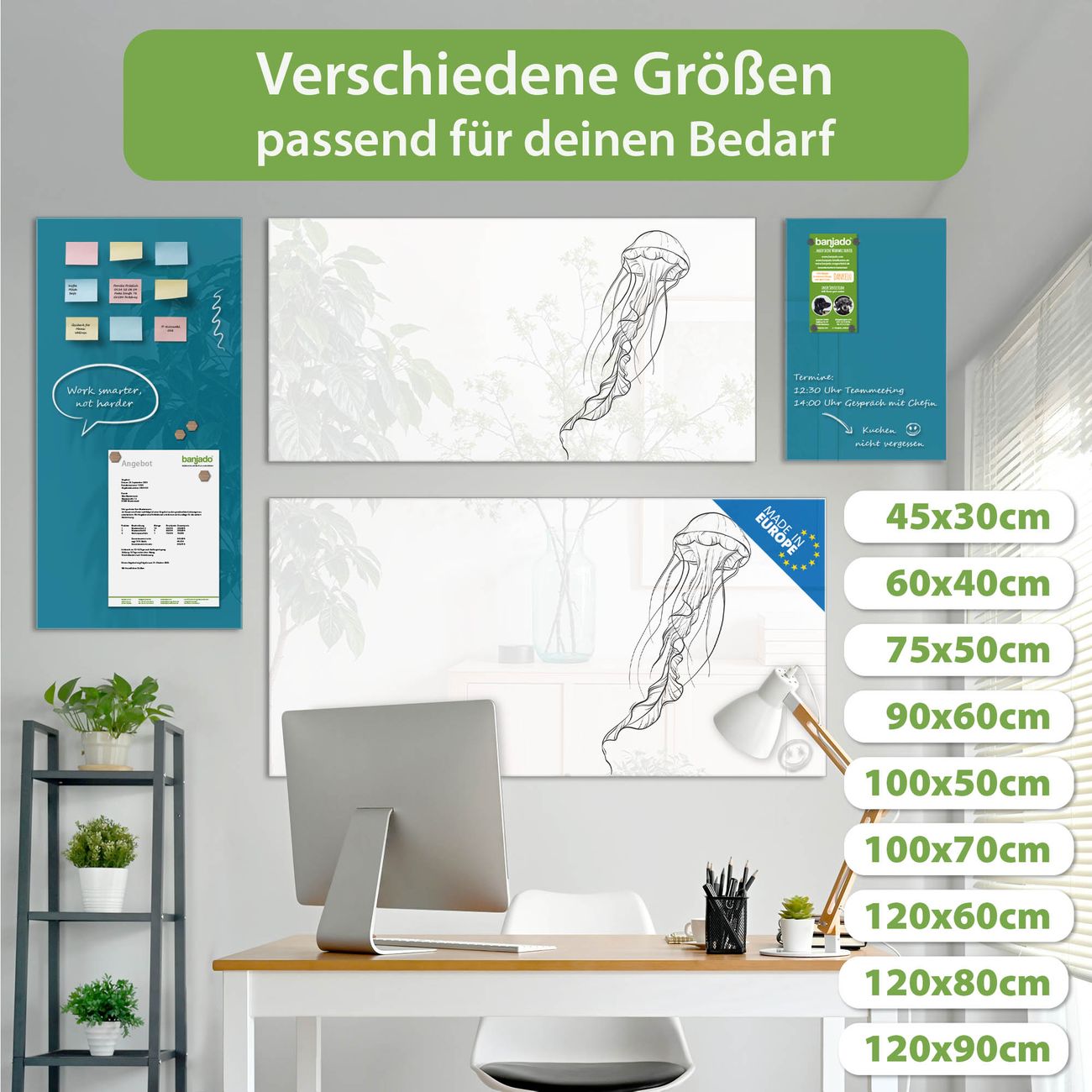 Jede Glas Magnettafel wird in unserer Werkstatt von Hand gefertigt und sorgfältig geprüft. So erhalten Sie ein echtes Qualitätsprodukt, das Funktion und Ästhetik perfekt vereint.?? Warum banjado?