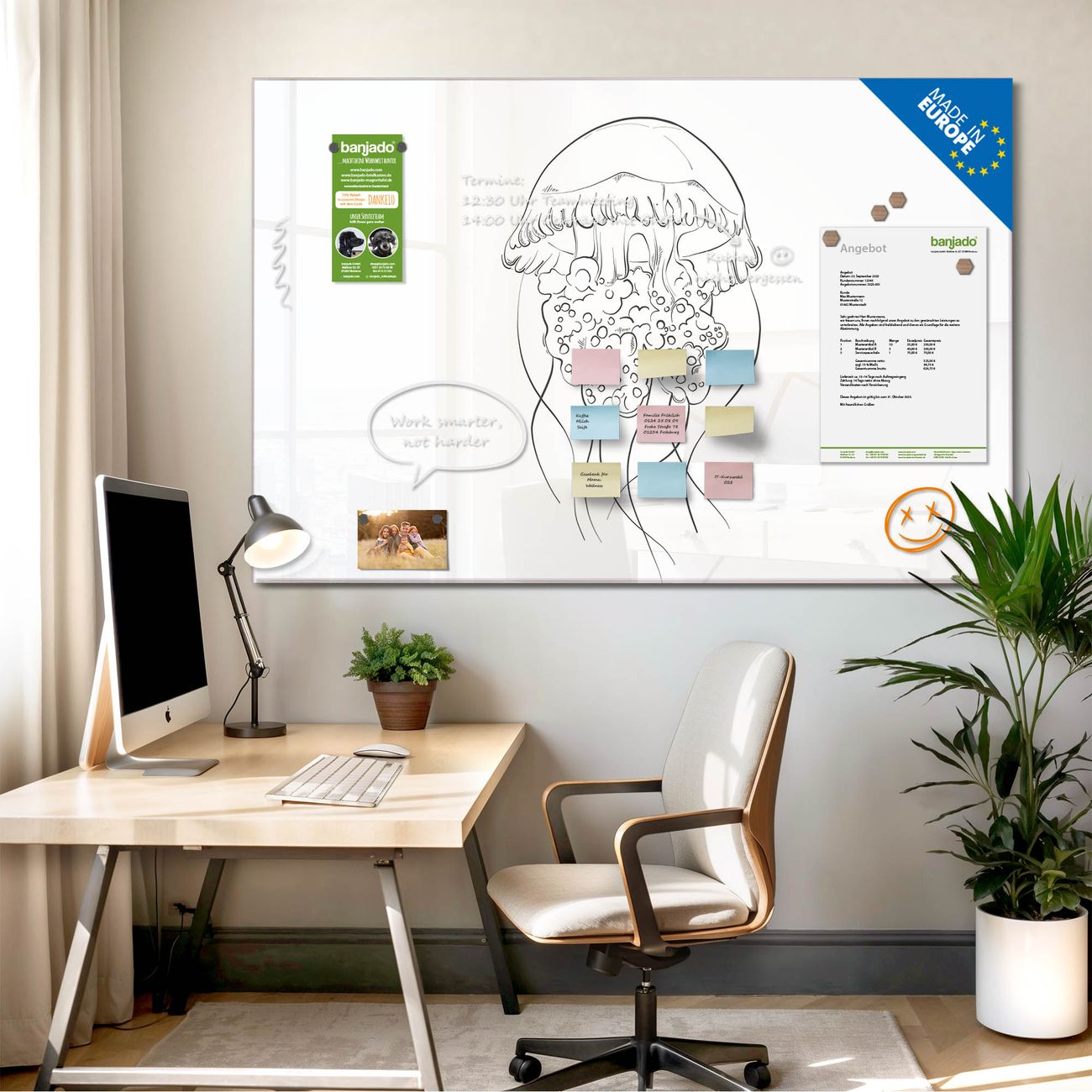 Jede Glas Magnettafel wird in unserer Werkstatt von Hand gefertigt und sorgfältig geprüft. So erhalten Sie ein echtes Qualitätsprodukt, das Funktion und Ästhetik perfekt vereint.?? Warum banjado?