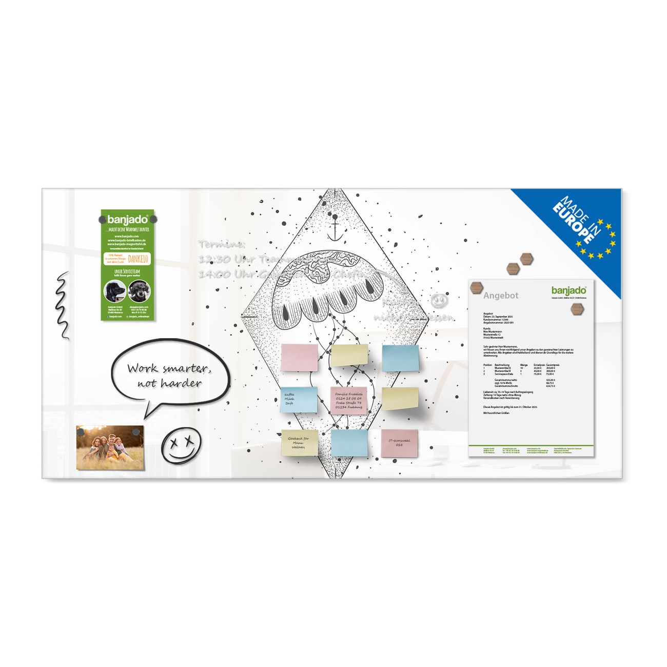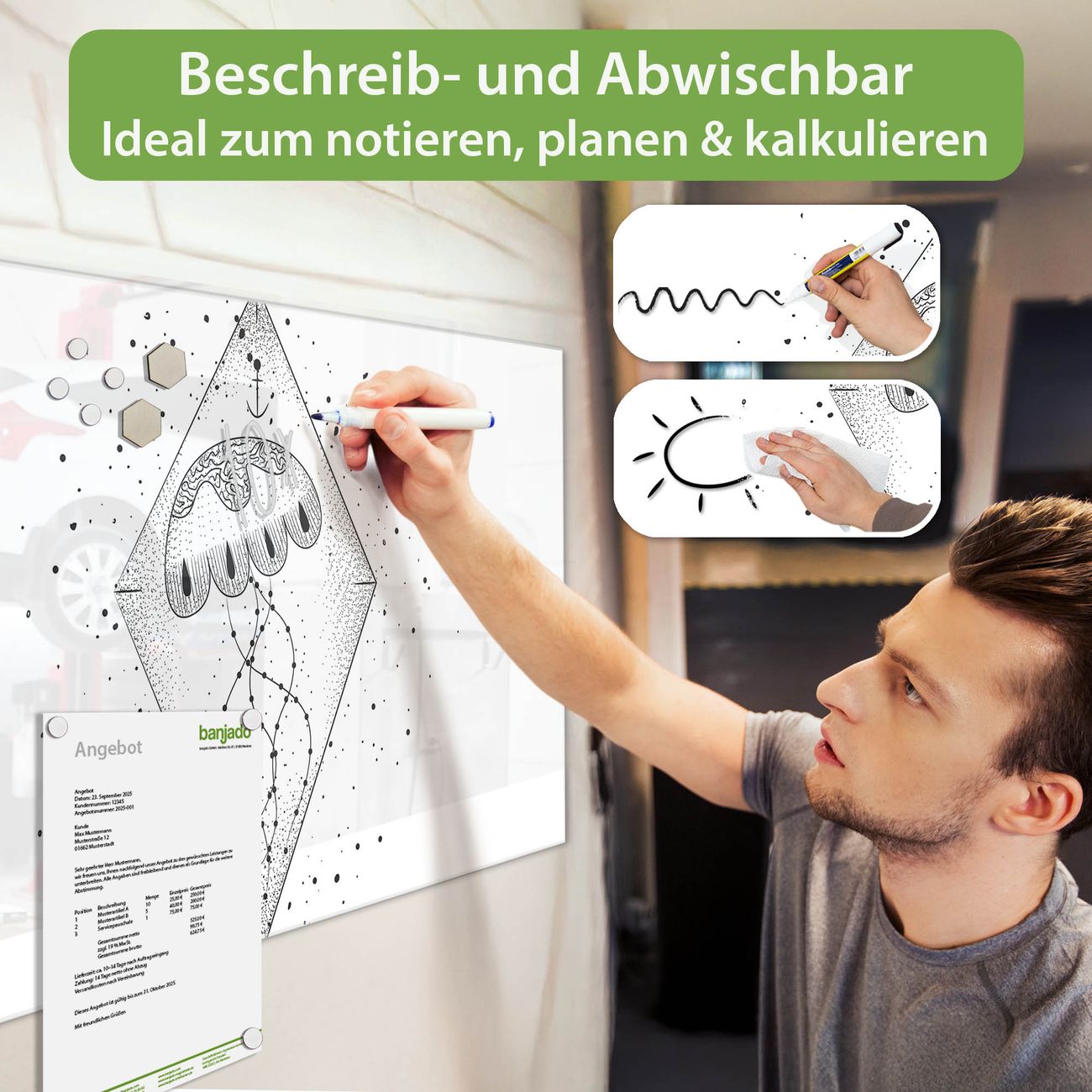 Jede Glas Magnettafel wird in unserer Werkstatt von Hand gefertigt und sorgfältig geprüft. So erhalten Sie ein echtes Qualitätsprodukt, das Funktion und Ästhetik perfekt vereint.?? Warum banjado?