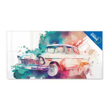 Glas Magnettafel im Querformat Motiv Retro-Auto in Aquarell