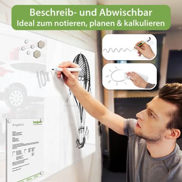 Gefertigt aus gehärtetem Sicherheitsglas mit einer magnetischen Rückwand aus Stahl überzeugt diese Magnettafel durch Stabilität und Langlebigkeit. Die Oberfläche bleibt dauerhaft brillant und pflegeleicht, selbst bei täglicher Nutzung.