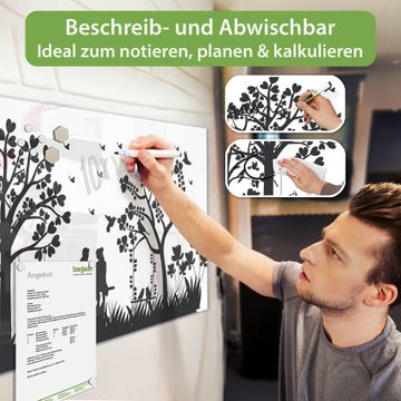 Die banjado Glas Magnettafel mit dem Motiv Motiv Romantische Silhouette im Park verbindet Funktionalität mit Stil. Sie ersetzt das Zettelchaos durch klare Strukturen und bringt dabei eine warme, natürliche Atmosphäre in Ihr Zuhause. Ob im Büro, in der Küche oder im Eingangsbereich - dieses Design-Board zieht Blicke an und sorgt für Ordnung mit Charakter.