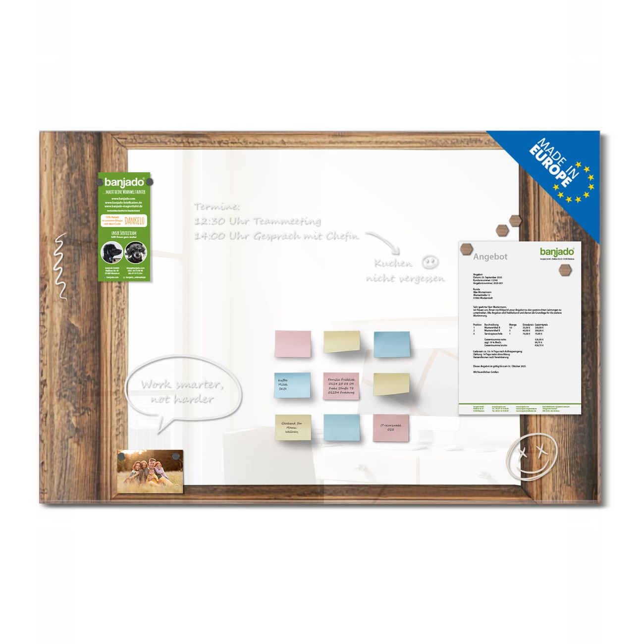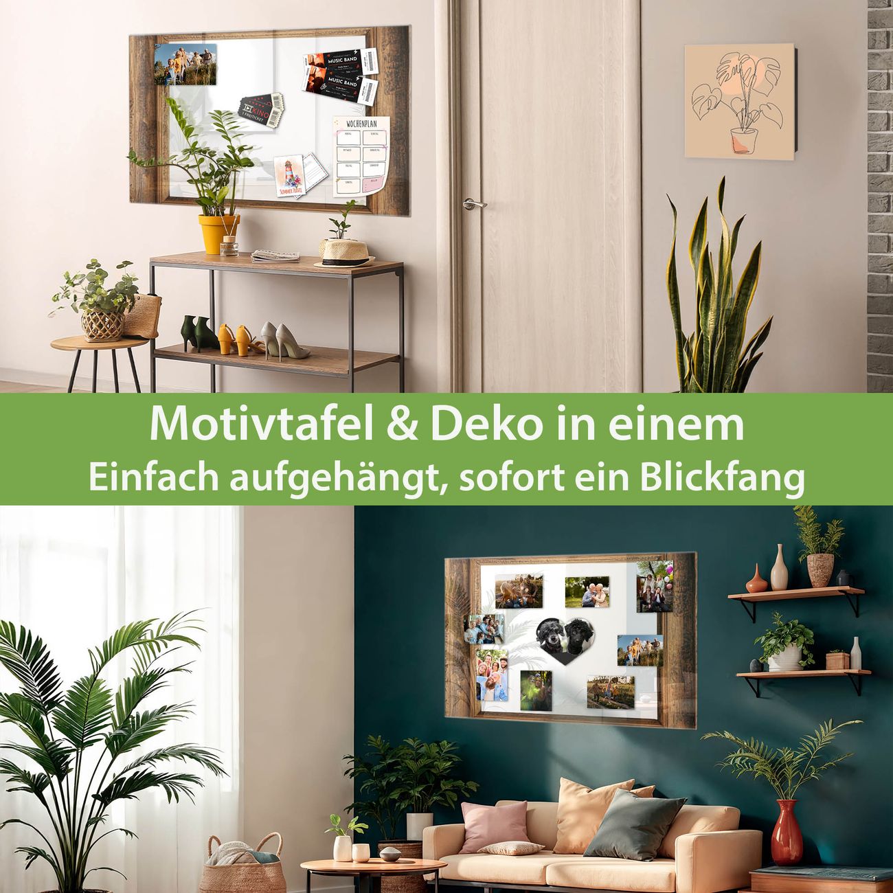 Glas Magnettafel im Querformat Motiv Rustikaler Holzrahmen