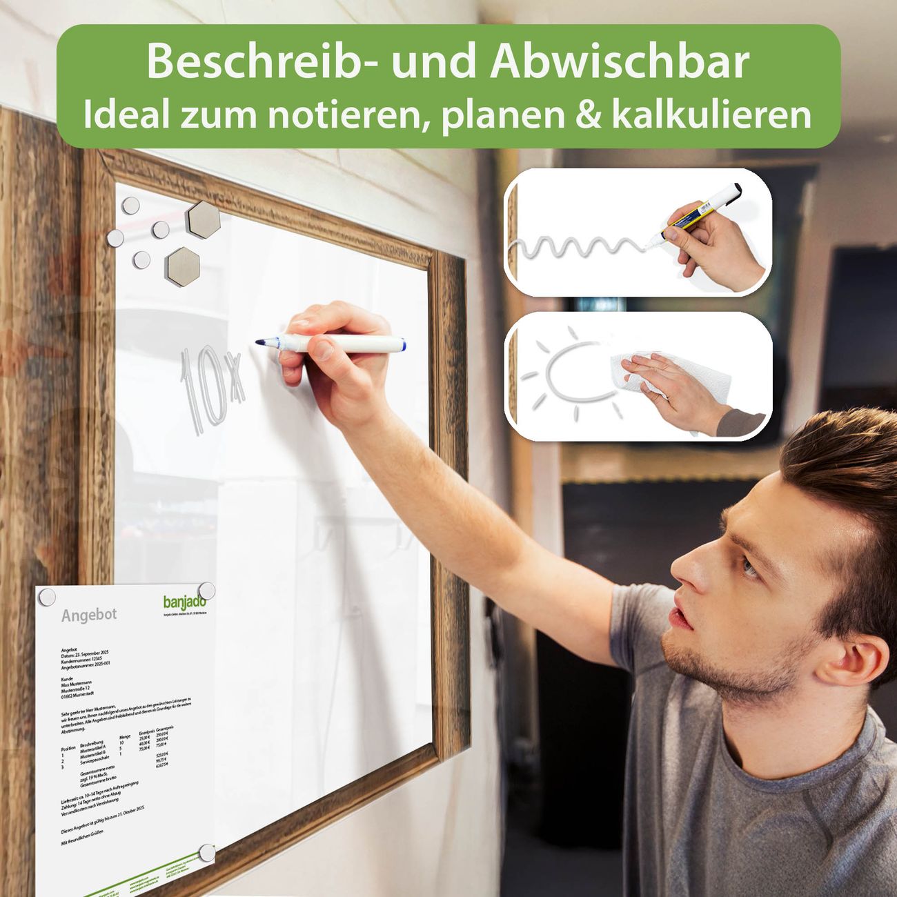 Bitte beachten Sie, dass ausschliessliche spezielle Magnete an der Glastafel haften. Wir empfehlen banjado Neodym Magnete, diese sind durch uns auf Wirksamkeit geprüft.