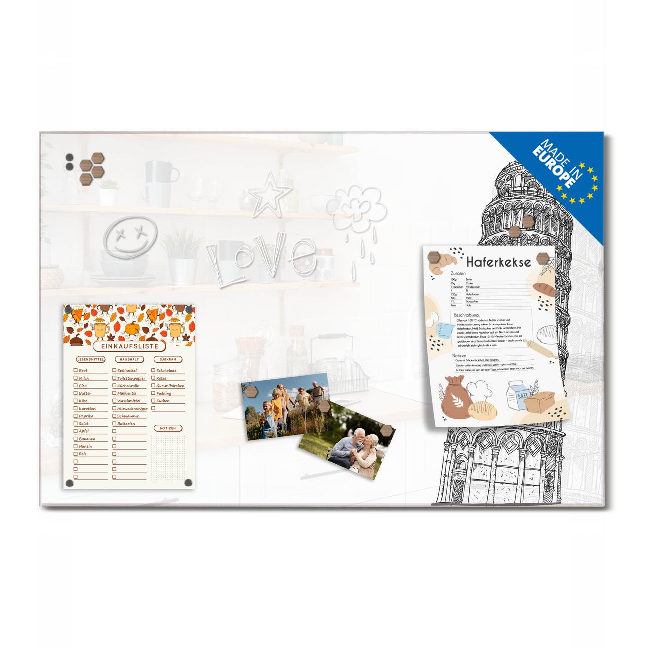 Ein Stück Design, das Ihren Alltag organisiert. Schreiben, heften, inspirieren - alles an einem Ort. Qualität, die man spürt. Montage leicht gemacht. Handwerk mit Herz - veredelt in Sachsen. Einzigartiges Design mit Motiv Motiv Schiefer Turm von Pisa Beschreibbare Glasoberfläche, leicht zu reinigen Starke Magnetkraft durch Stahlrückwand Inklusive 4 Neodym-Magneten Flexible Montageoptionen Handveredelt in Sachsen - Qualität, die bleibt