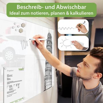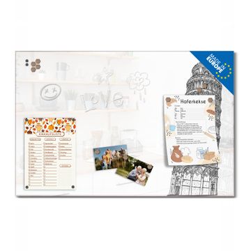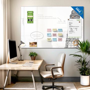 Auf der glatten Glasoberfläche lassen sich Termine, Rezepte oder Notizen ganz einfach mit Kreidestiften festhalten und rückstandslos entfernen. Starke Neodym-Magnete halten Ihre wichtigsten Erinnerungen sicher an Ort und Stelle. So entsteht Ihre ganz persönliche Ideenwand - jeden Tag neu.