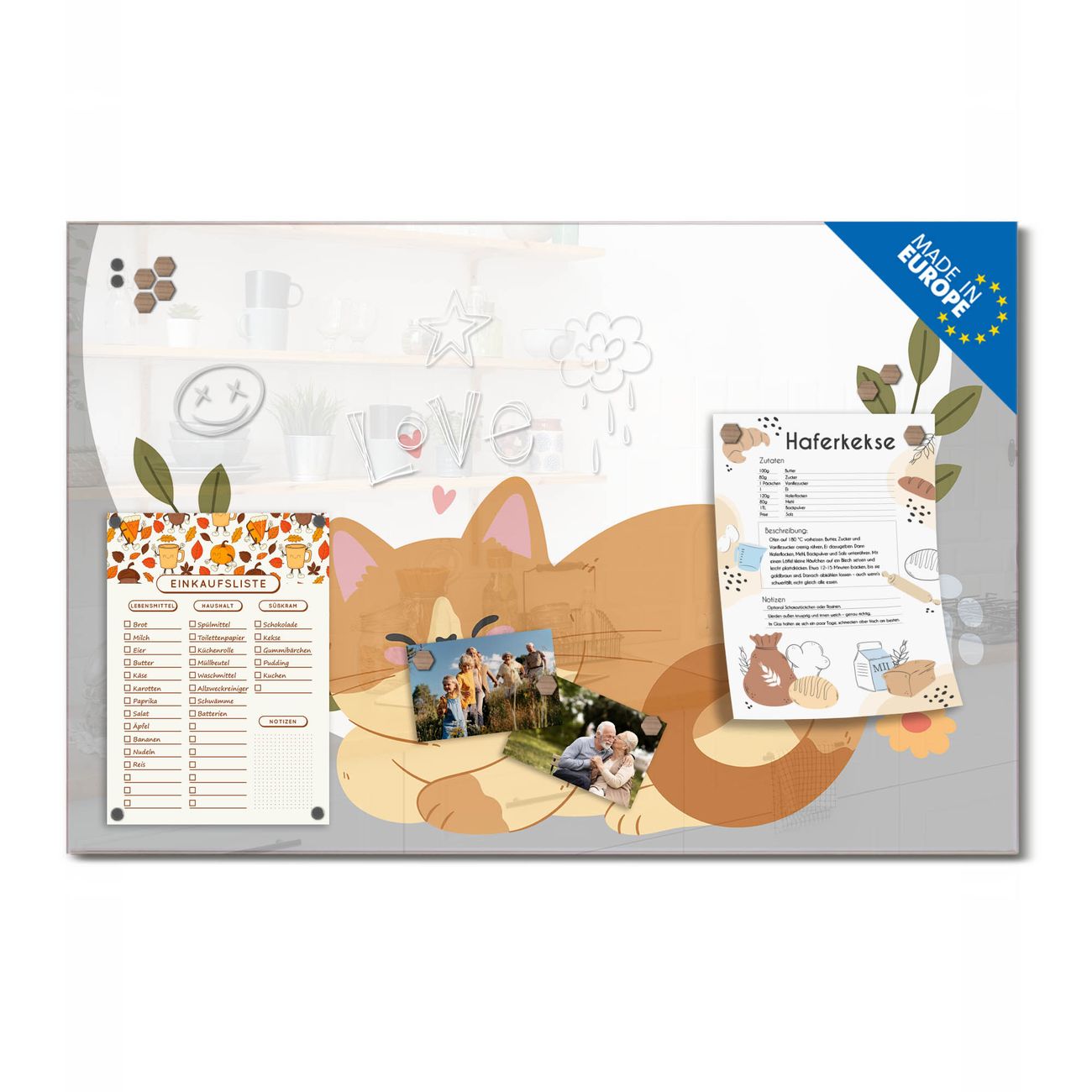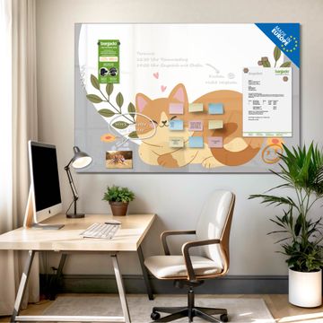 Glas Magnettafel im Querformat Motiv Schlafende Katze im Garten