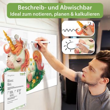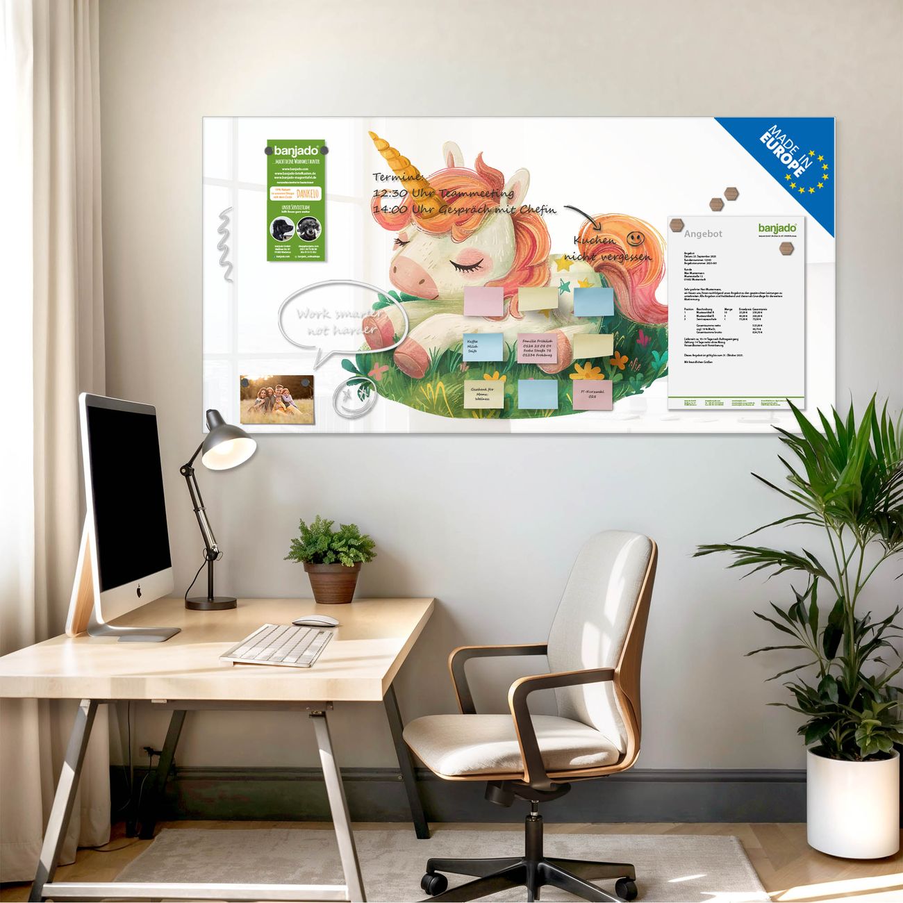 Die banjado Glas Magnettafel mit dem Motiv Motiv Schlafendes Einhorn verbindet Funktionalität mit Stil. Sie ersetzt das Zettelchaos durch klare Strukturen und bringt dabei eine warme, natürliche Atmosphäre in Ihr Zuhause. Ob im Büro, in der Küche oder im Eingangsbereich - dieses Design-Board zieht Blicke an und sorgt für Ordnung mit Charakter.
