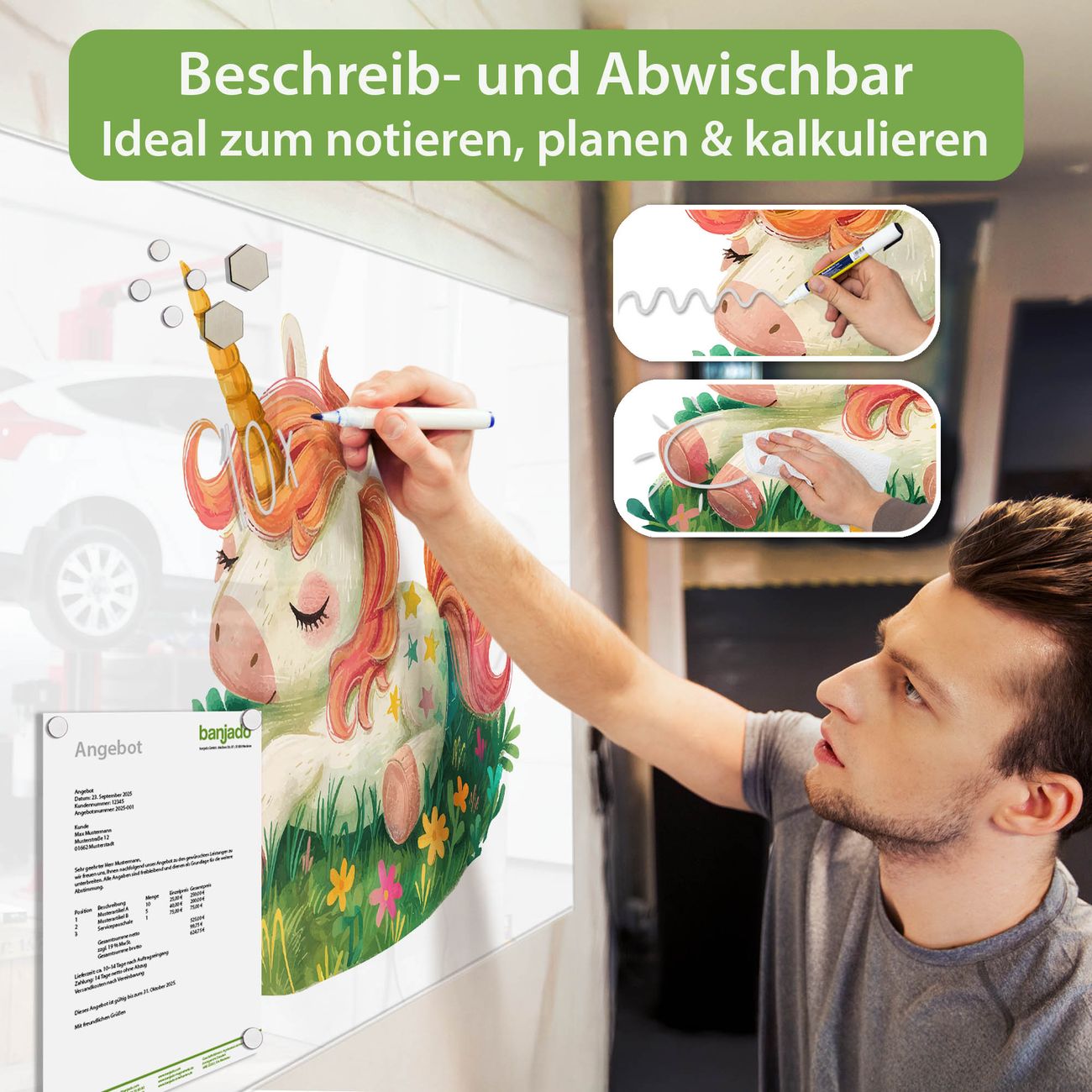 Jede Glas Magnettafel wird in unserer Werkstatt von Hand gefertigt und sorgfältig geprüft. So erhalten Sie ein echtes Qualitätsprodukt, das Funktion und Ästhetik perfekt vereint.?? Warum banjado?
