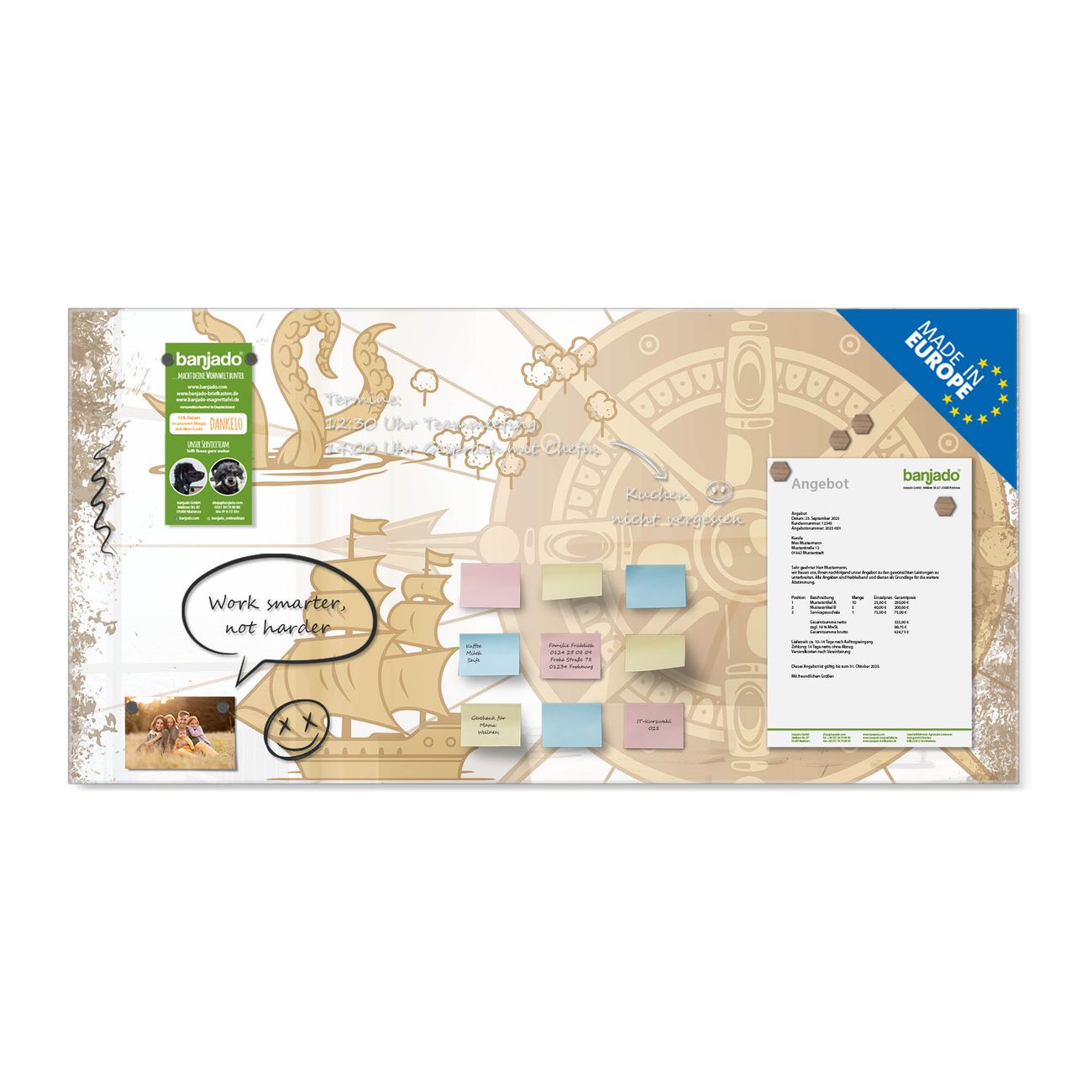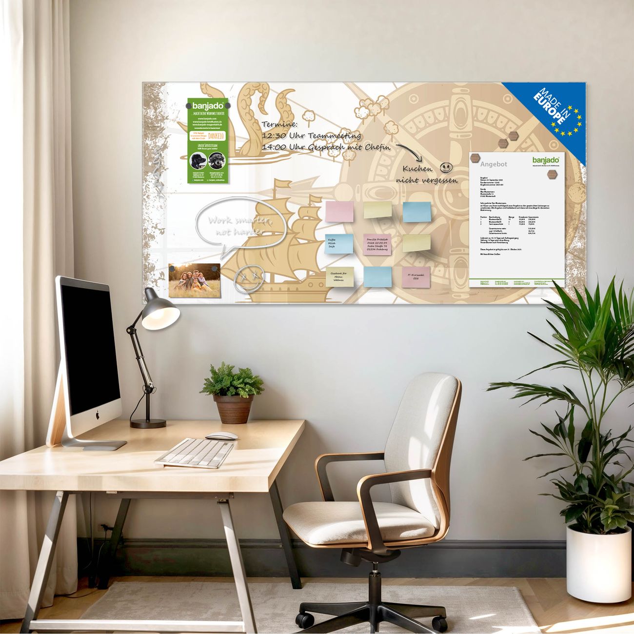 Die banjado Glas Magnettafel mit dem Motiv Motiv Seemonster und Segelschiff verbindet Funktionalität mit Stil. Sie ersetzt das Zettelchaos durch klare Strukturen und bringt dabei eine warme, natürliche Atmosphäre in Ihr Zuhause. Ob im Büro, in der Küche oder im Eingangsbereich - dieses Design-Board zieht Blicke an und sorgt für Ordnung mit Charakter.