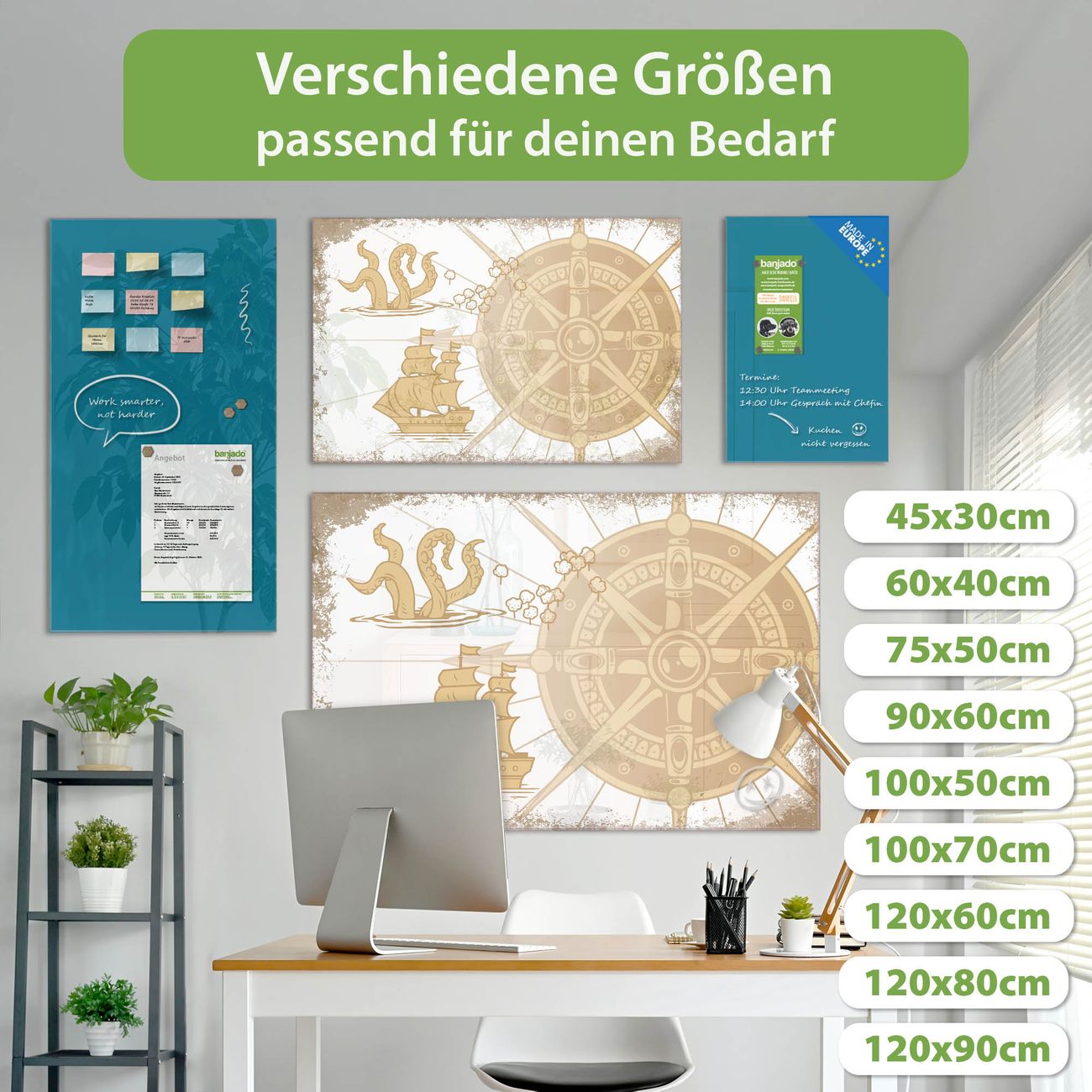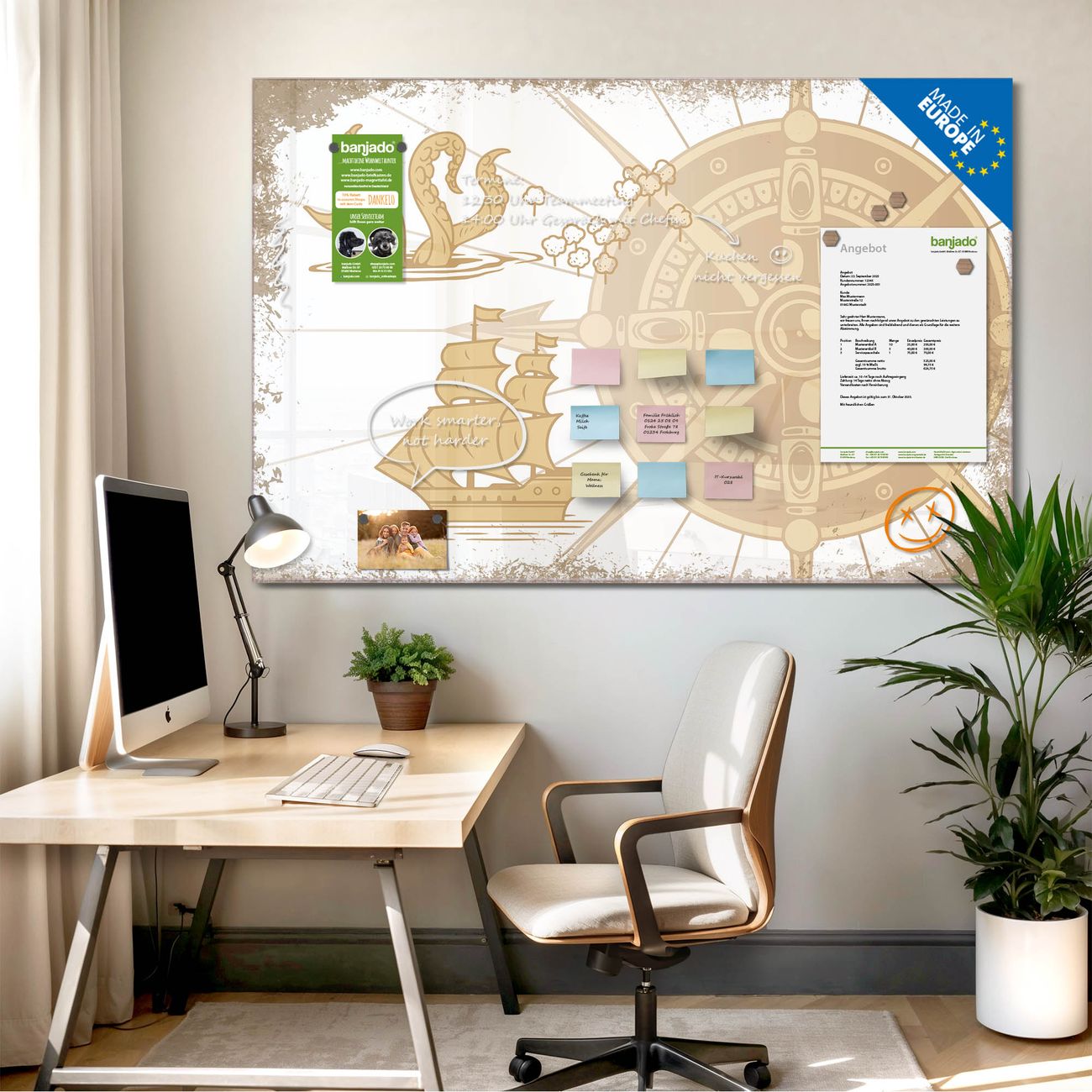 Jede Glas Magnettafel wird in unserer Werkstatt von Hand gefertigt und sorgfältig geprüft. So erhalten Sie ein echtes Qualitätsprodukt, das Funktion und Ästhetik perfekt vereint.?? Warum banjado?