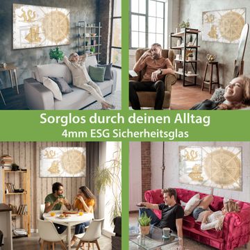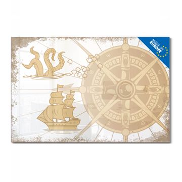 Material: 4mm Sicherheitsglas mit Metallrückwand Eigenschaften: beschreibbar, magnetisch, kratzfest Maße: 120x80x0,6cm, 14,40kg schwer Motiv Nummer 13583 Seemonster und Segelschiff Zubehör: inklusive 4 Neodym-Magnete