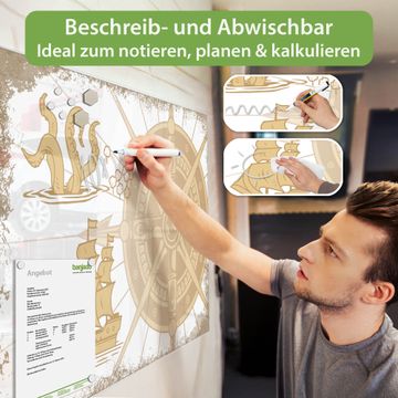 Die banjado Glas Magnettafel mit dem Motiv Motiv Seemonster und Segelschiff verbindet Funktionalität mit Stil. Sie ersetzt das Zettelchaos durch klare Strukturen und bringt dabei eine warme, natürliche Atmosphäre in Ihr Zuhause. Ob im Büro, in der Küche oder im Eingangsbereich - dieses Design-Board zieht Blicke an und sorgt für Ordnung mit Charakter.