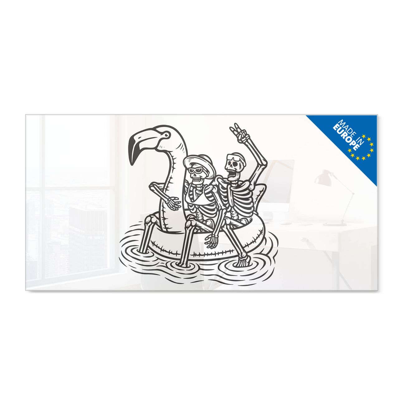 Glas Magnettafel im Querformat Motiv Skelette mit Flamingoschwimmring 2