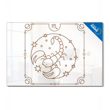 Material: 4mm Sicherheitsglas mit Metallrückwand Eigenschaften: beschreibbar, magnetisch, kratzfest Maße: 120x80x0,6cm, 14,40kg schwer Motiv Nummer 13191 Skorpion Sternzeichen Zubehör: inklusive 4 Neodym-Magnete