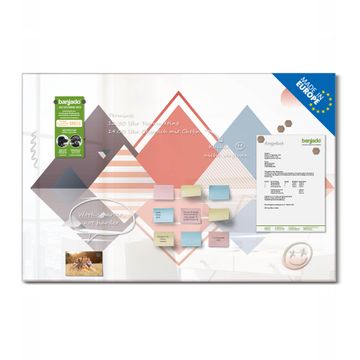 Die banjado Glas Magnettafel mit dem Motiv Motiv Spiegelnde Geometrie verbindet Funktionalität mit Stil. Sie ersetzt das Zettelchaos durch klare Strukturen und bringt dabei eine warme, natürliche Atmosphäre in Ihr Zuhause. Ob im Büro, in der Küche oder im Eingangsbereich - dieses Design-Board zieht Blicke an und sorgt für Ordnung mit Charakter.