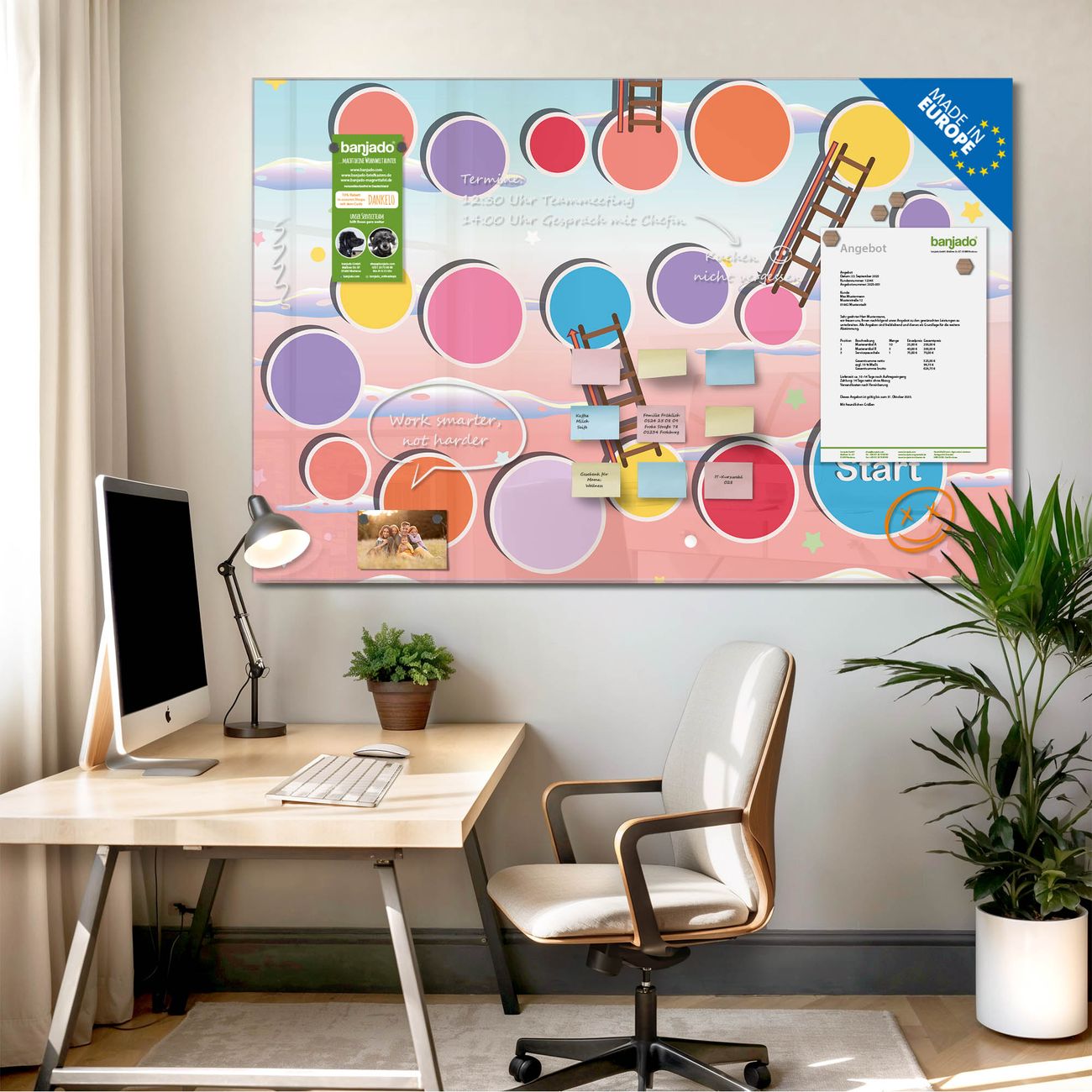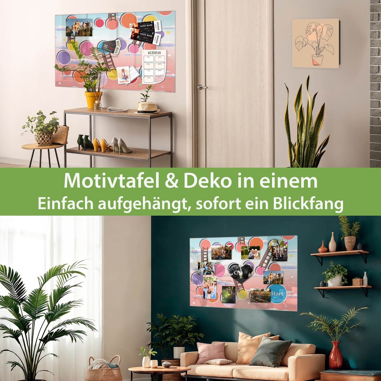 Die banjado Glas Magnettafel mit dem Motiv Motiv Spielbrett 1 verbindet Funktionalität mit Stil. Sie ersetzt das Zettelchaos durch klare Strukturen und bringt dabei eine warme, natürliche Atmosphäre in Ihr Zuhause. Ob im Büro, in der Küche oder im Eingangsbereich - dieses Design-Board zieht Blicke an und sorgt für Ordnung mit Charakter.