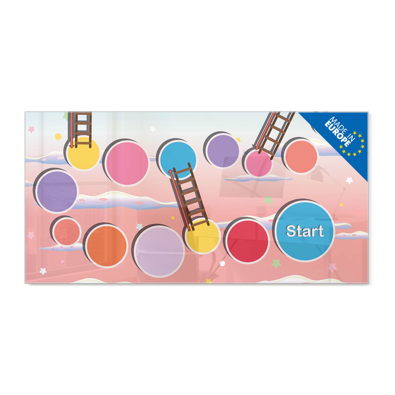 Material: 4mm Sicherheitsglas mit Metallrückwand Eigenschaften: beschreibbar, magnetisch, kratzfest Maße: 100x50x0,6cm, 7,50kg schwer Motiv Nummer 13003 Spielbrett 1 Zubehör: inklusive 4 Neodym-Magnete