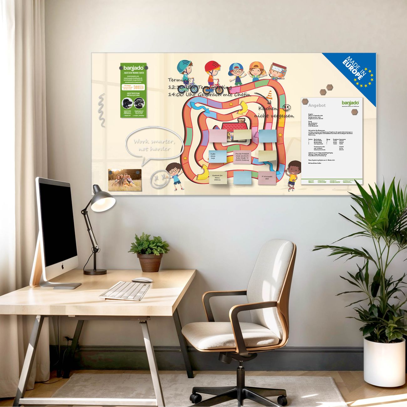 Die banjado Glas Magnettafel mit dem Motiv Motiv Spielbrett 2 verbindet Funktionalität mit Stil. Sie ersetzt das Zettelchaos durch klare Strukturen und bringt dabei eine warme, natürliche Atmosphäre in Ihr Zuhause. Ob im Büro, in der Küche oder im Eingangsbereich - dieses Design-Board zieht Blicke an und sorgt für Ordnung mit Charakter.
