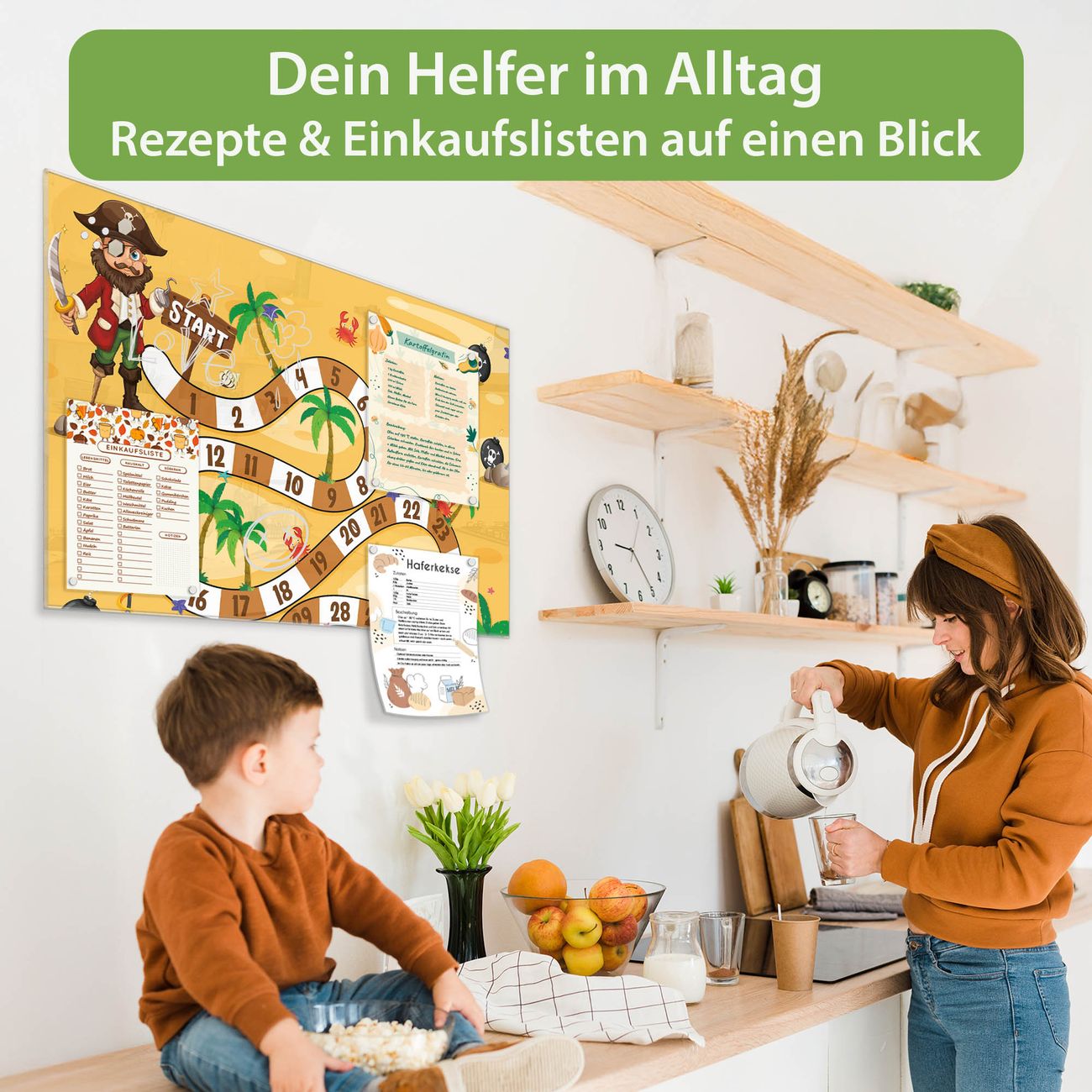 Auf der glatten Glasoberfläche lassen sich Termine, Rezepte oder Notizen ganz einfach mit Kreidestiften festhalten und rückstandslos entfernen. Starke Neodym-Magnete halten Ihre wichtigsten Erinnerungen sicher an Ort und Stelle. So entsteht Ihre ganz persönliche Ideenwand - jeden Tag neu.