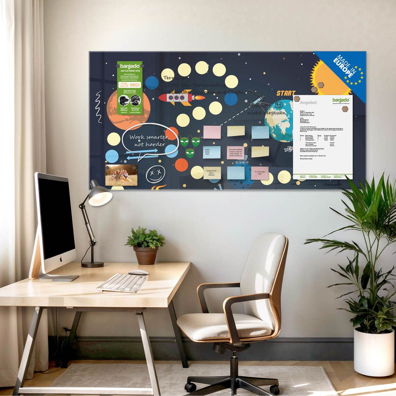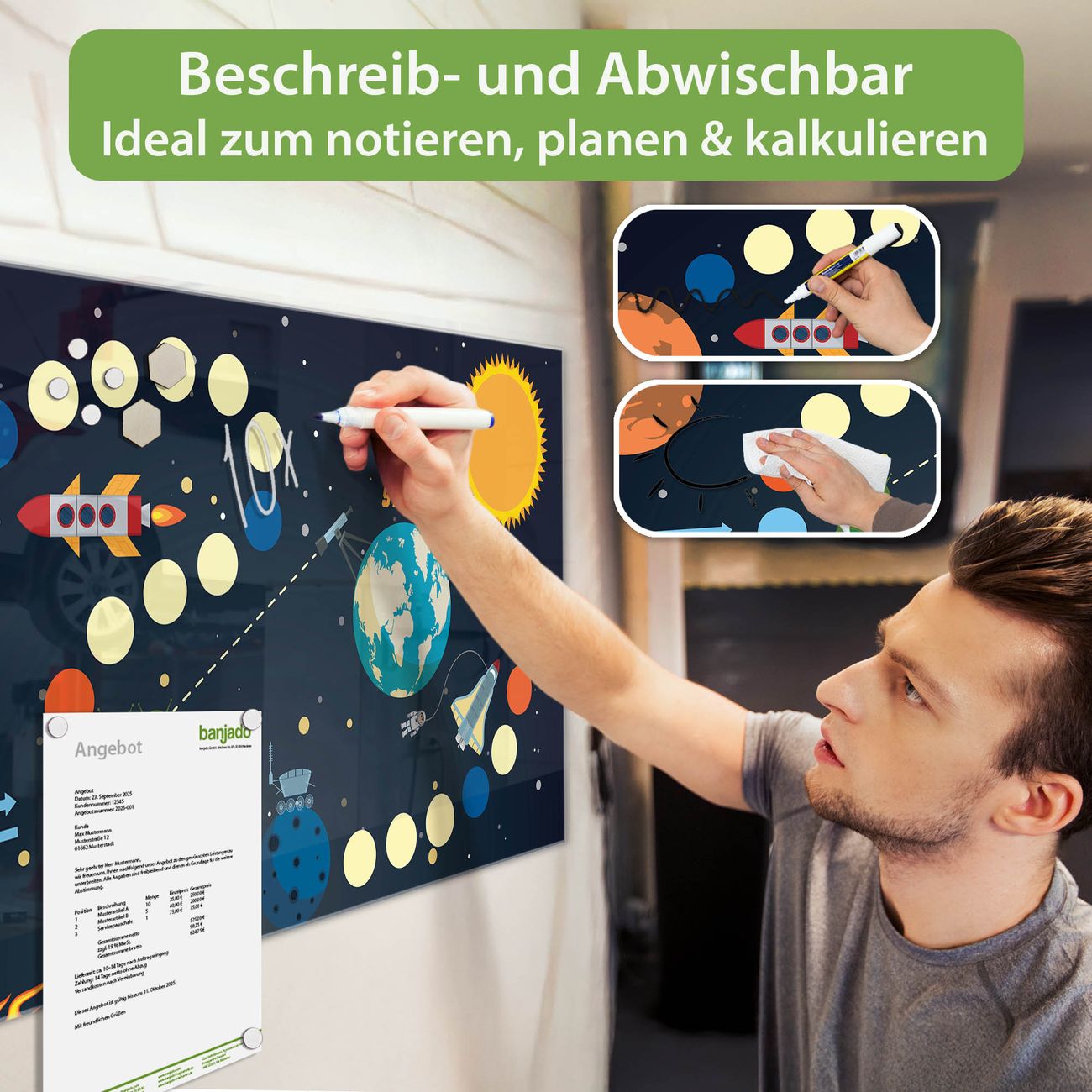 Jede Glas Magnettafel wird in unserer Werkstatt von Hand gefertigt und sorgfältig geprüft. So erhalten Sie ein echtes Qualitätsprodukt, das Funktion und Ästhetik perfekt vereint.?? Warum banjado?