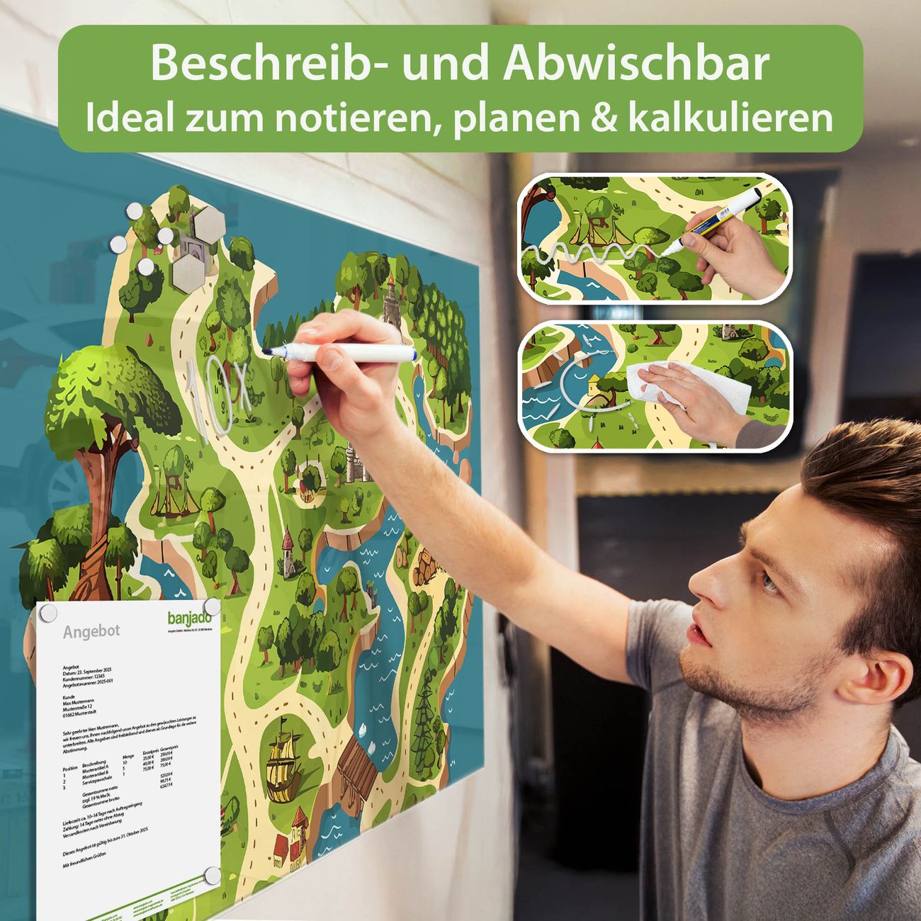 Glas Magnettafel im Querformat Motiv Spielinsel