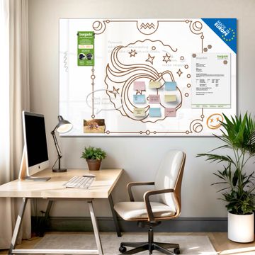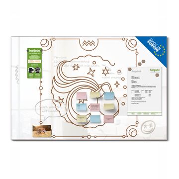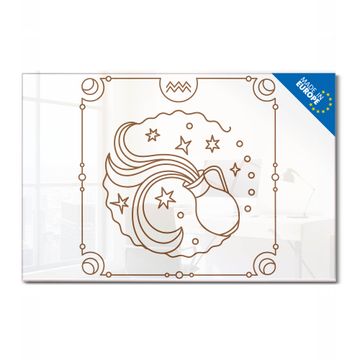 Material: 4mm Sicherheitsglas mit Metallrückwand Eigenschaften: beschreibbar, magnetisch, kratzfest Maße: 120x80x0,6cm, 14,40kg schwer Motiv Nummer 13182 Sternzeichen Wassermann Zubehör: inklusive 4 Neodym-Magnete
