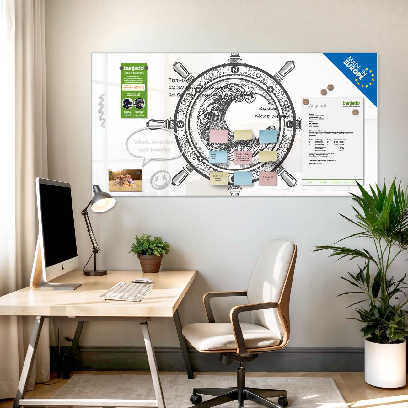 Jede Glas Magnettafel wird in unserer Werkstatt von Hand gefertigt und sorgfältig geprüft. So erhalten Sie ein echtes Qualitätsprodukt, das Funktion und Ästhetik perfekt vereint.?? Warum banjado?