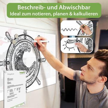 Die banjado Glas Magnettafel mit dem Motiv Motiv Steuerrad 2 verbindet Funktionalität mit Stil. Sie ersetzt das Zettelchaos durch klare Strukturen und bringt dabei eine warme, natürliche Atmosphäre in Ihr Zuhause. Ob im Büro, in der Küche oder im Eingangsbereich - dieses Design-Board zieht Blicke an und sorgt für Ordnung mit Charakter.