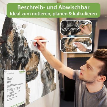 Die banjado Glas Magnettafel mit dem Motiv Motiv Tierische Begegnung verbindet Funktionalität mit Stil. Sie ersetzt das Zettelchaos durch klare Strukturen und bringt dabei eine warme, natürliche Atmosphäre in Ihr Zuhause. Ob im Büro, in der Küche oder im Eingangsbereich - dieses Design-Board zieht Blicke an und sorgt für Ordnung mit Charakter.
