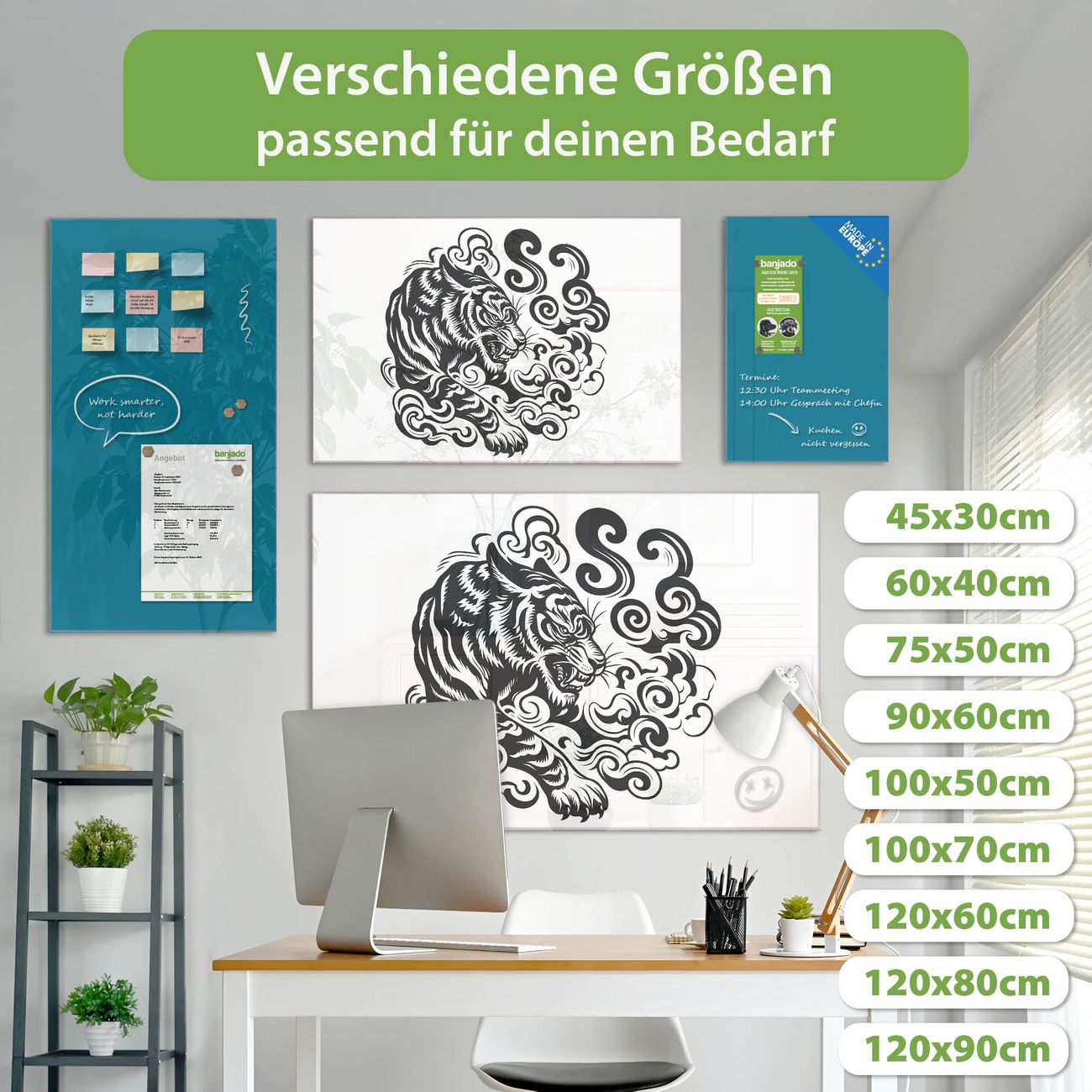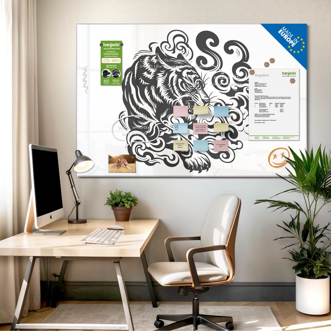 Jede Glas Magnettafel wird in unserer Werkstatt von Hand gefertigt und sorgfältig geprüft. So erhalten Sie ein echtes Qualitätsprodukt, das Funktion und Ästhetik perfekt vereint.?? Warum banjado?