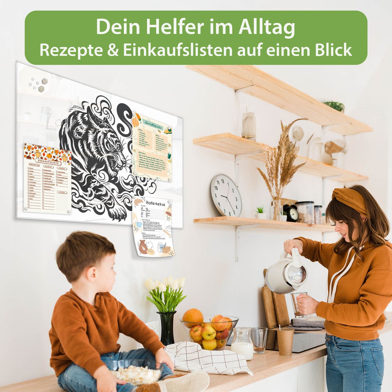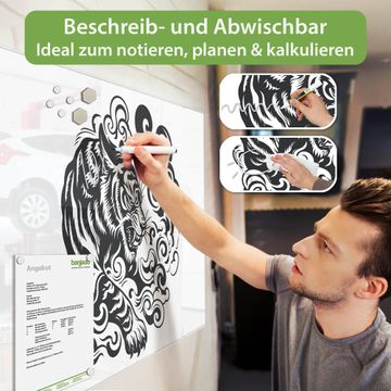 Ein Stück Design, das Ihren Alltag organisiert. Schreiben, heften, inspirieren - alles an einem Ort. Qualität, die man spürt. Montage leicht gemacht. Handwerk mit Herz - veredelt in Sachsen. Einzigartiges Design mit Motiv Motiv Tiger Illustration Beschreibbare Glasoberfläche, leicht zu reinigen Starke Magnetkraft durch Stahlrückwand Inklusive 4 Neodym-Magneten Flexible Montageoptionen Handveredelt in Sachsen - Qualität, die bleibt