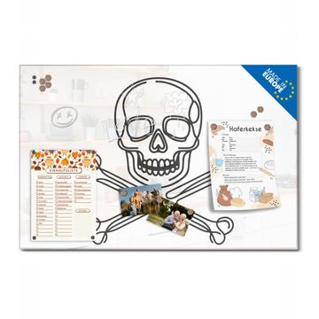 Glas Magnettafel im Querformat Motiv Totenkopf und Knochen